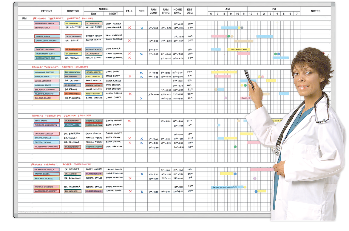 Therapy Plan and Time Schedule Magnetic Dry-Erase Hospital Whiteboard System