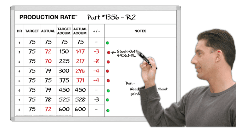 Production Rate Chart Magnetic Dry-Erase Whiteboard Systems
