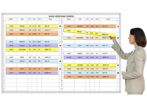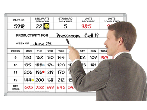 These unique printed steel magnetic lean manufacturing scoreboards display your Key Performance Indicator results and are field-proven effective for communicating production metrics and trend tracking.
