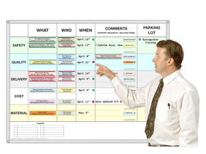 Cutting the time for die changeovers gives you smoother start-ups, more frequent product changes and lower inventory levels. This SMED whiteboard records each changeover's time for comparison-tracking, highlighting specific areas for improvement. It encourages your team to expect and deliver continuous improvement, efficiently organizing external changeover elements and streamlining the entire process. Before long, they'll be working with the efficiency of a race car pit crew.