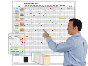We always know what equipment is available... We have a large fleet of vehicles and equipment that needs regular maintenance in order to keep everything operational. We're using this board to help us manage all of this information so that we can limit the amount of downtime and repairs required. Service dates used to be marked on the equipment's file, but that doesn't do you any good unless you regularly review them. Who has the time for that? With this board we have the entire maintenance schedule available to us in an instant and we always know what equipment is available when we're planning new jobs or moving things around on the schedule.