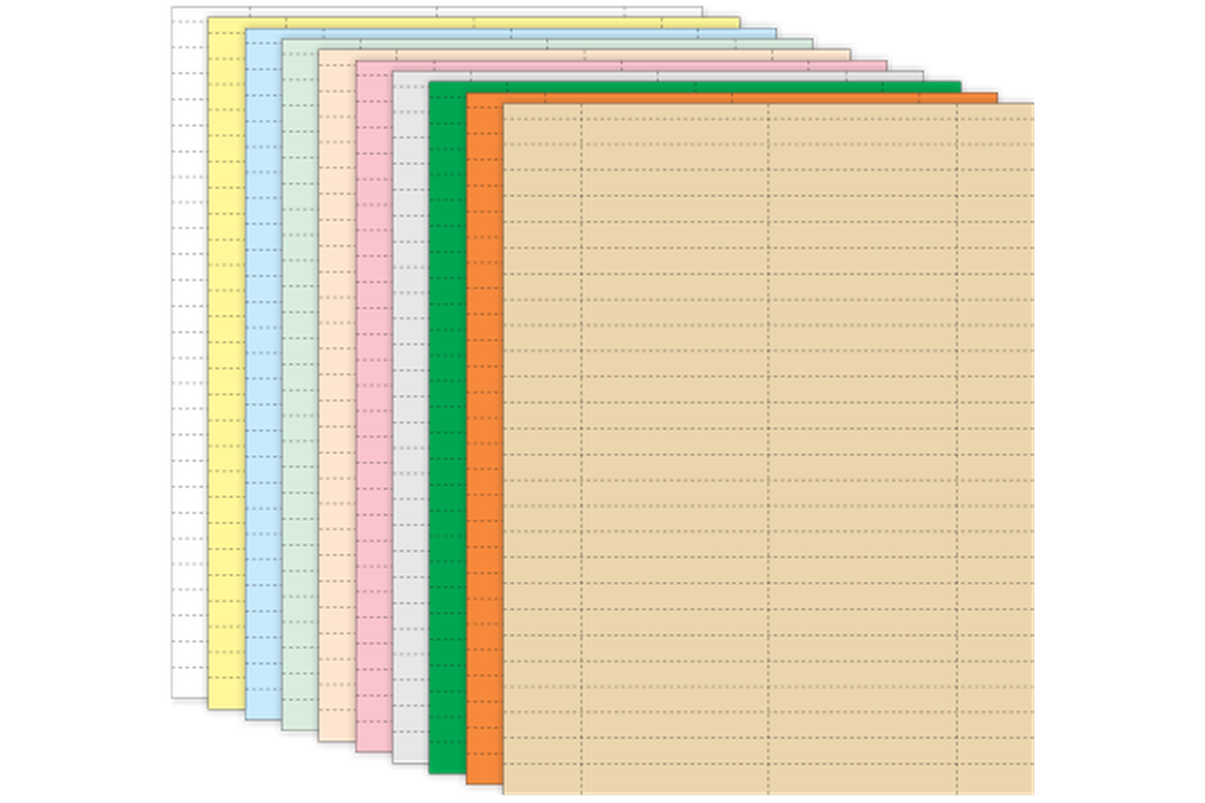Package of 10 sheets (500 total) card inserts in 10 colors perforated 50-up to fit Magnatag #CH53 1/2" x 3" cardholders