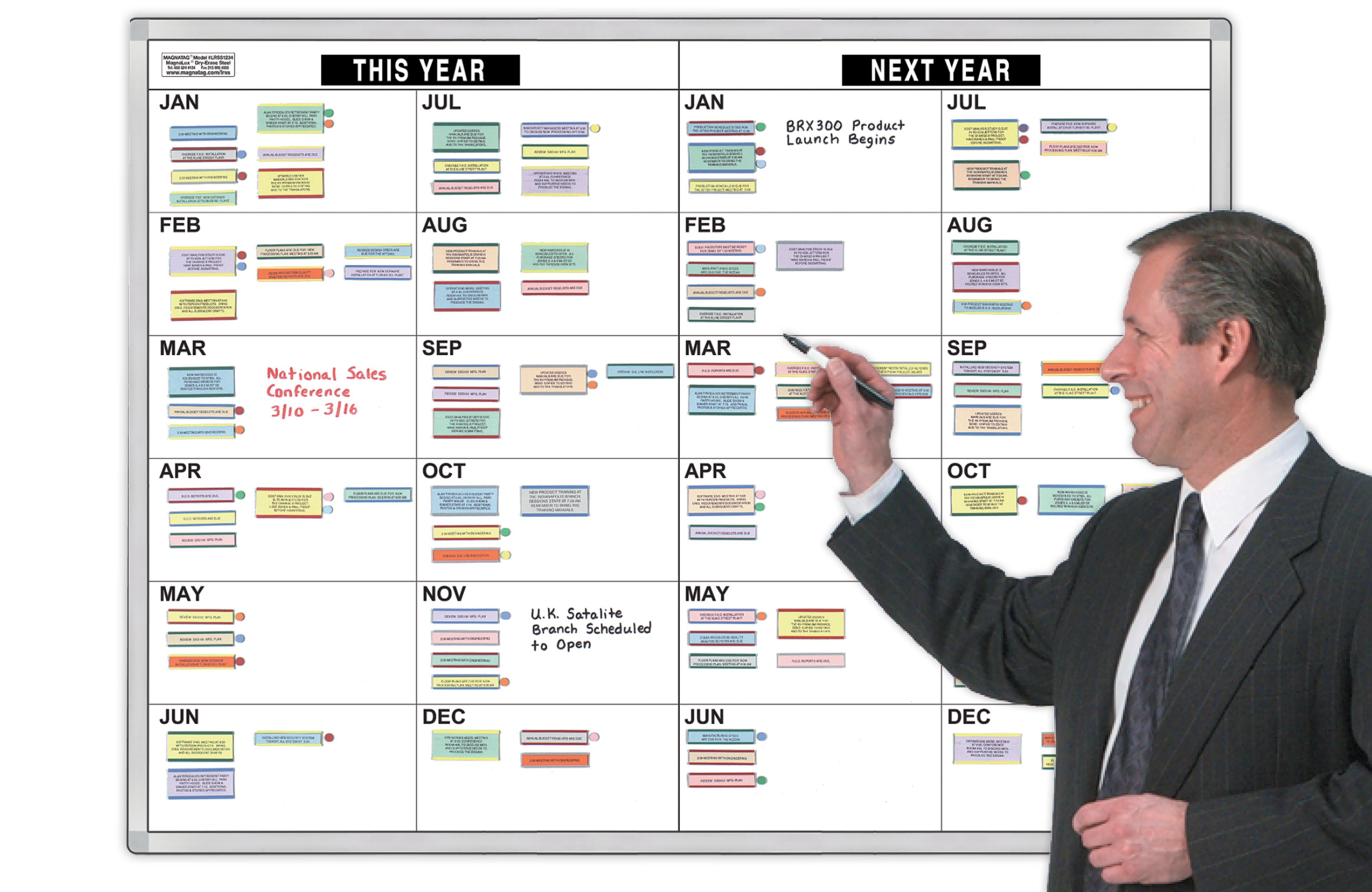 Before you can turn around it's next year already! Well, you'll always be ready for it with this magnetic board, Ideal for extended master planning: 2 board Sizes: 3x4' & 4x6'