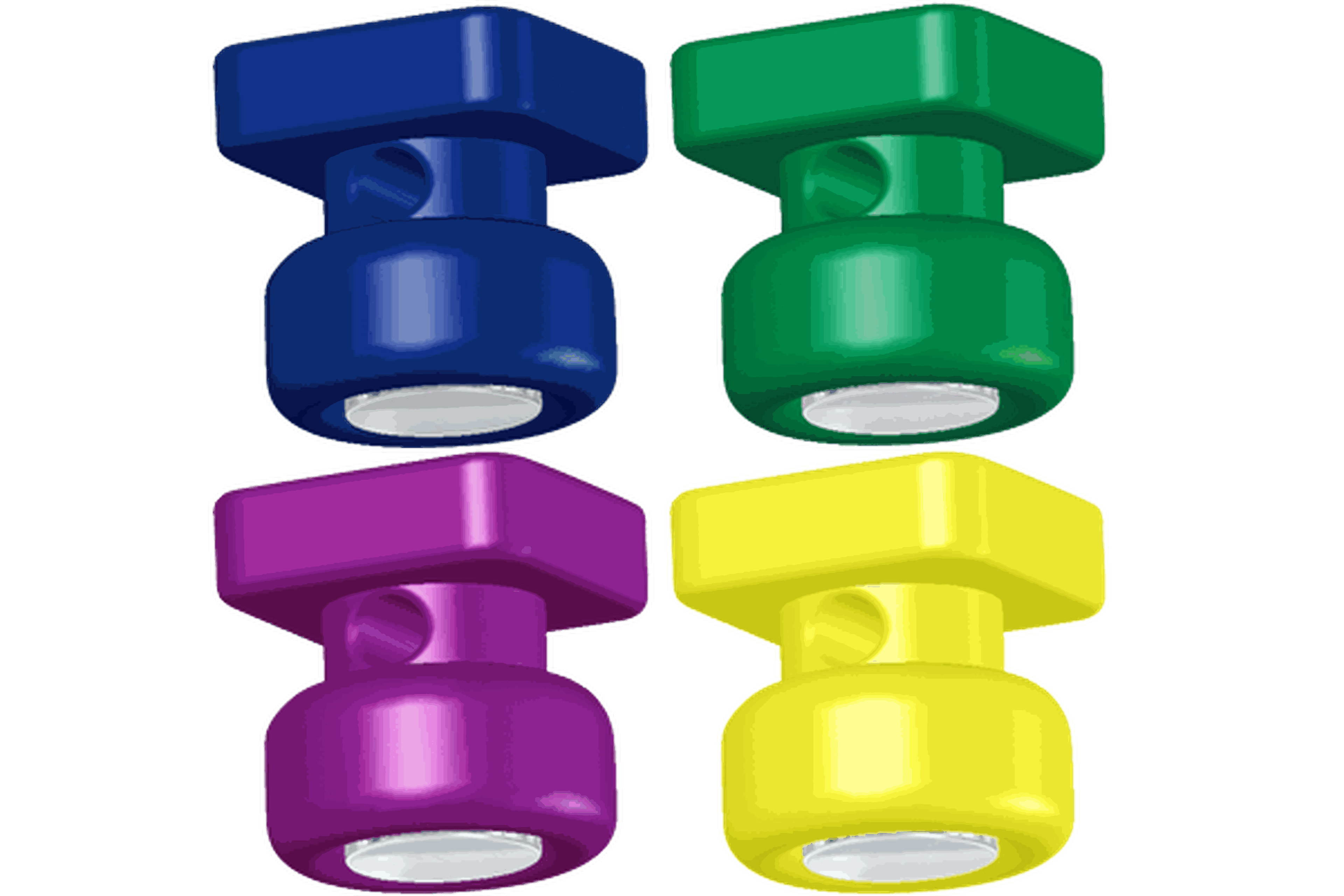 pkg of 4 WakTack® Rare Earth Magnets: blue, green, purple, and yellow for extra codes.