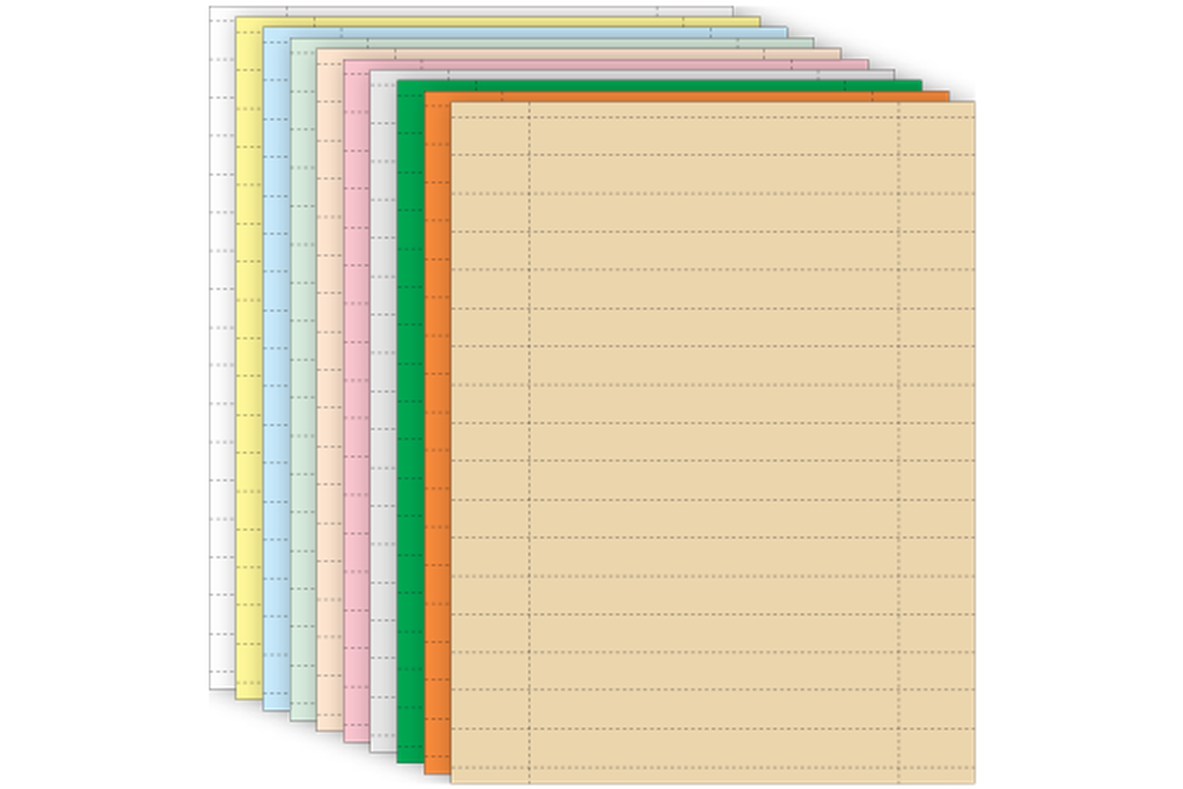 Package of 10 sheets (170 total) card inserts in 10 colors perforated 17-up to fit Magnatag #CH86 5/8" x 6" cardholders