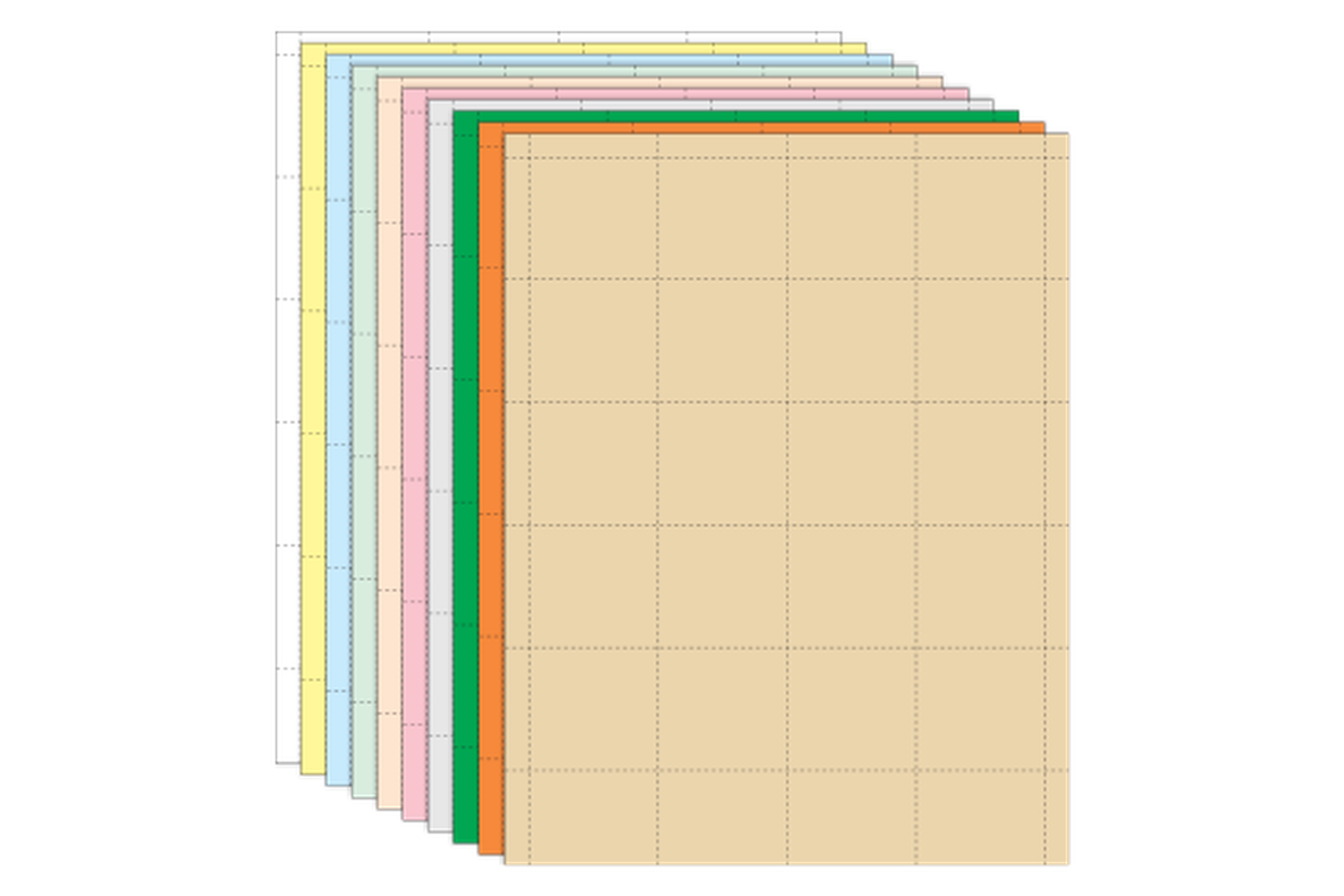 Package of 10 sheets (200 total) card inserts in 10 colors perforated 20-up to fit Magnatag #CH22 2" x 2" cardholders