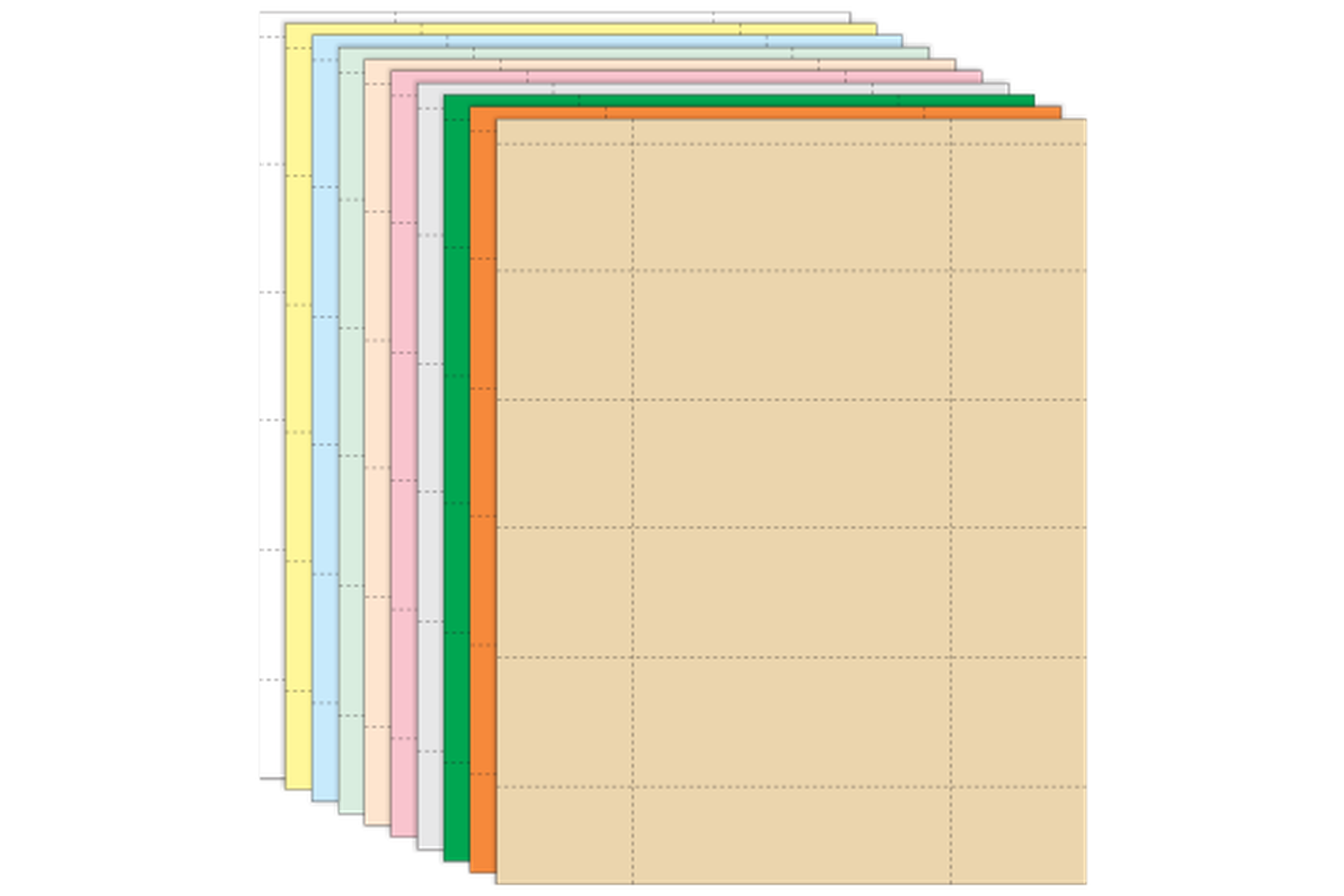 Packages of 10 sheets (200 total) card inserts in 10 colors perforated 5-up to fit Magnatag #CH25 2" x 5" cardholders