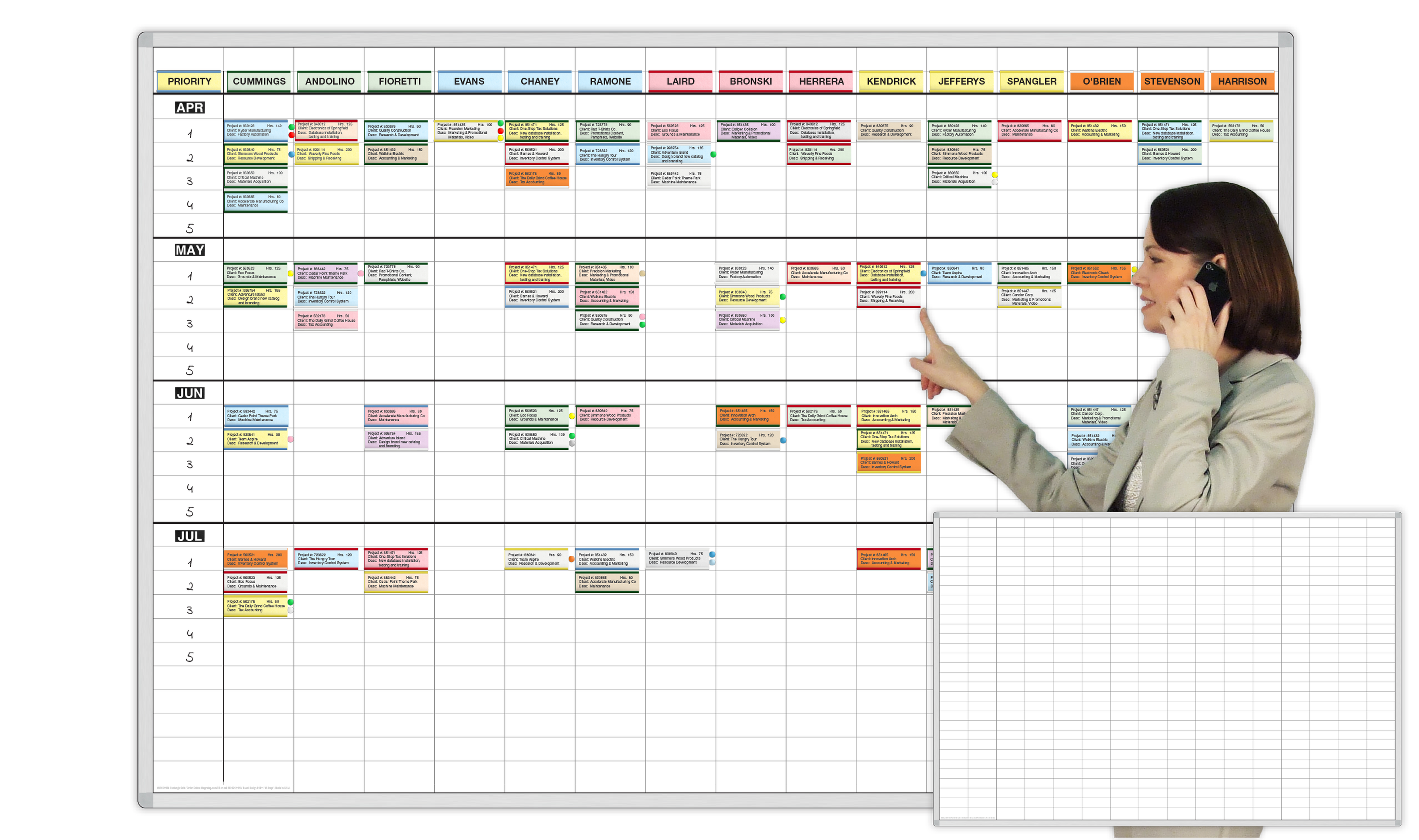 The hand-smooth gray grid print is heat-fused into the MagnaLux® porcelain-like white steel surface staying clean and like-new for a lifetime of daily use. Each of the 8 grid sizes has cells sized to fit the optional magnetic cardholders in the kit plus extra cell space for 1 or more color-coded magnet status signals.